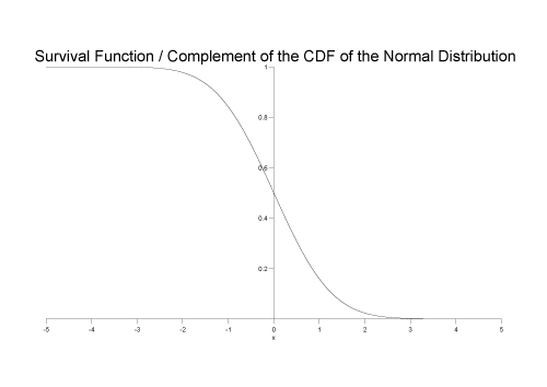 For example, the following graph shows the __complement of the cdf for the normal distribution: