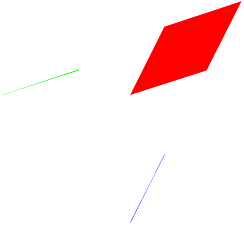 The algorithm implemented for Minkowski sum in this tutorial is very simple. It is based on the convolution of polygon edges. The convolution of two edges is very easy to compute and is in general a parallelogram. An example of two edges being convolved to produce a parallelogram is shown below.
